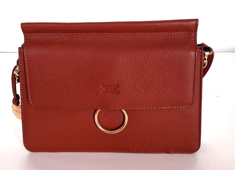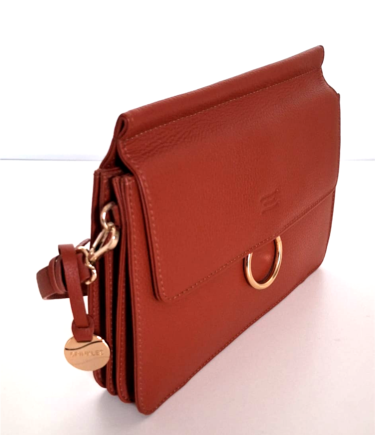 Leder. Roestkleur. Meerdere vakken binnenin.
